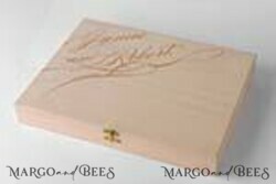 Elegance knows no bounds with guestbooks featuring elegant velvet covers adorned with golden lettering. These opulent guestbooks are a testament to sophistication and luxury, perfect for formal weddings. The golden lettering adds a personal touch and is bound to captivate your guests.- Boho Rustic Wedding Guestbook with Wooden Cover: